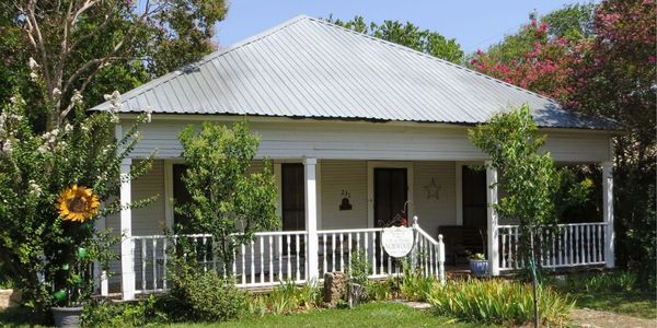 E.M. Hutchens married Ruby Vickrey December 31, 1917. Prior to their marriage, Hutchens had attended Salado College from 1913 - 1917. At the time “Miss Ruby was head of the piano department. Hutchens had even signed up as a piano student. Later, he entered the journalism department of the University of Texas at Austin, and it was from there he volunteered for the Army in 1917. Hutchens was on his way home, suffering from shell-shock, when daughter Helen was born in 1918, at the home of her grandparent’s G.N. and Sophia Vickrey. Son, Richard Vickrey Hutchen was born in 1924. After living at various places in Texas, the couple decided to come to Salado and build a house. They bought the site where the present house is located plus several acres to the north and east. The house was built in 1921 by Hutchens, and Paul Pirtle and his father, E.G. Pirtle. Hutchens lived there until his death in 1979. Materials for the house were brought from the V.R. Means Lumber Company in Belton. Several outbuildings surrounded the house one of which was known as Hutchens’ Ritin Shack. It was in this small cabin that Hutchens wrote his well-known history book, Tales of Old Salado. The Hutchens’ home was filled with literature and music. Hutchens had a rare library including one hundred volumes of English and American classics, and Greek and Roman history and mythology. For over 35 years the home was filled with the music of Miss Ruby’s piano students, each with 30-40 lessons a year, as well as the childrens choirs that sometimes gathered here. Victor Means Jr. purchased the home in 1991 from Hutchens family. Vic Means himself remodeled the house. The house has two owners since that time, Pete Simcut and Dennis Dewine, the present owners.