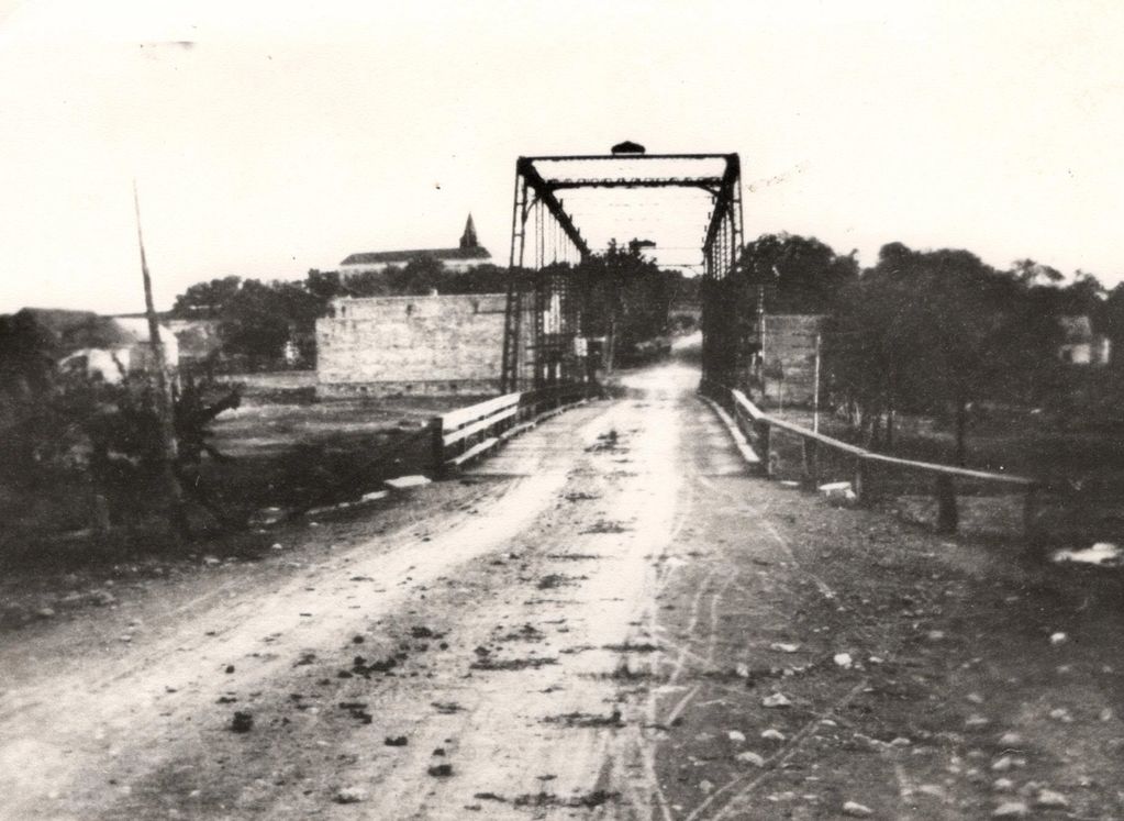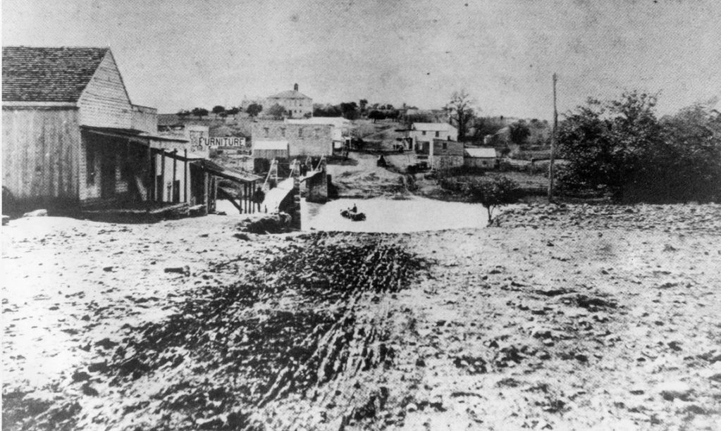 Wooden bridge built in 1892 washed away in the flood of 1900.